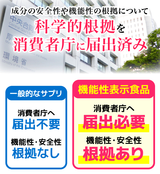 シボローカは一般的なサプリと違って、正式に体重や脂肪を減らす効果が消費者庁に認められているんです!